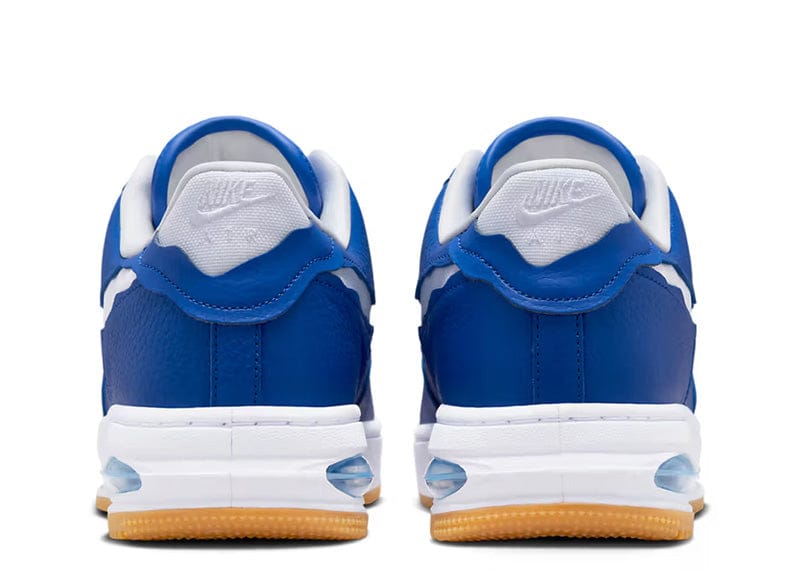 Nike Air Force 1 Low Evo Team Royal channels classic sportswear heritage with a striking blue leather upper, white midsole, and gum outsole. The design showcases exposed Air units in the forefoot and heel that puncture through the midsole's rubber surface, creating bold visual impact. Ripped and torn detailing reveals a white canvas base beneath the blue leather, while a cut-out Swoosh and clipped tongue add architectural depth. This isn't a finished silhouette—it's a deliberately deconstructed statement that transforms an iconic sneaker into a contemporary art piece. Perfect for collectors who appreciate raw design innovation and premium craftsmanship.