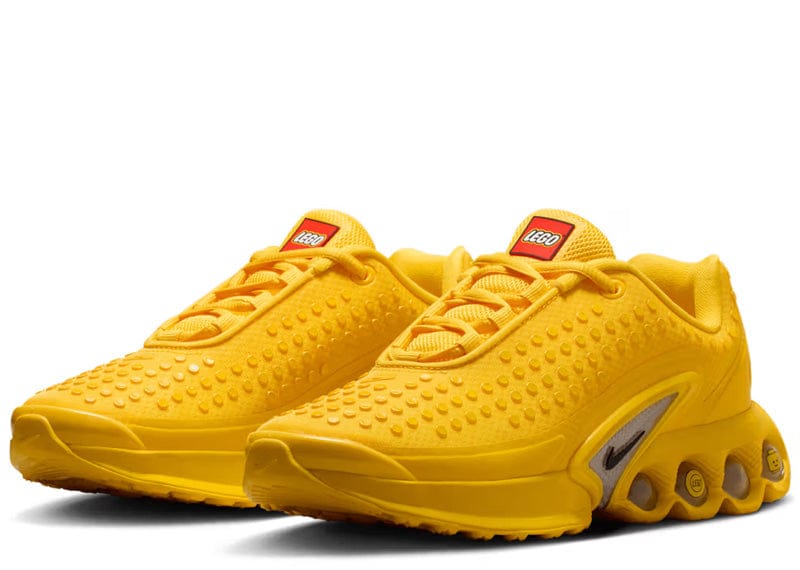 Made for big kids, the LEGO x Nike Air Max DN GS 'Tour Yellow' takes inspiration from a LEGO brick, highlighted by raised studs throughout a breathable textile upper in Tour Yellow. LEGO branding appears on the tongue tag and sockliner, while Nike branding decorates the iridescent heel tab. A matching yellow finish is applied to the midsole, featuring lightweight Phylon foam in the forefoot and four-tubed Dynamic Air cushioning in the heel.