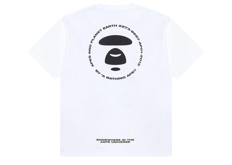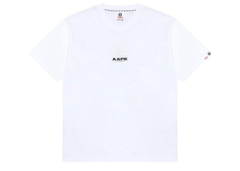 AAPE By A Bathing Ape presents this essential white crew neck tee, featuring the iconic Moonface embossed logo prominently displayed on the front. Crafted with short sleeves for versatile everyday wear, this basic tee delivers understated sophistication with recognizable branding. A wardrobe staple that pairs effortlessly with any ensemble, offering quality construction and timeless appeal for the discerning collector.