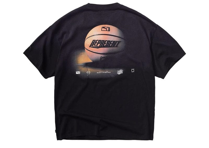 Represent and PUMA converge on this season's essential oversized tee, merging athletic legacy with contemporary streetwear sensibility. Constructed from premium cotton, the piece features a relaxed silhouette and reinforced ribbed crewneck designed for sustained comfort throughout the day. Striking co-branded graphics celebrate the partnership while drawing inspiration from classic basketball court aesthetics, positioning this collaboration as a statement piece that bridges performance heritage and luxury urban styling.