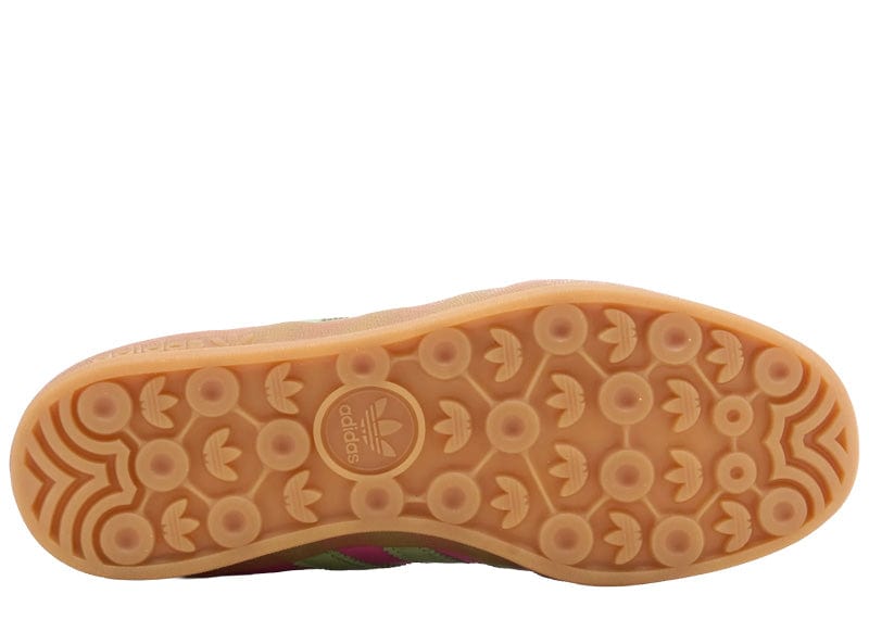 The adidas Gazelle Indoor in Semi Lucid Fuchsia and Semi Green Spark Coral offers a fresh, bold take on a classic sneaker. Featuring a vibrant suede upper paired with striking green accents on the iconic three stripes and heel tab, this shoe brings energy and style to your everyday look. Designed for women who want to stand out, its lively color combination adds a playful yet timeless touch, making it an essential addition that brightens any outfit while honoring the Gazelle’s heritage of minimalist design.