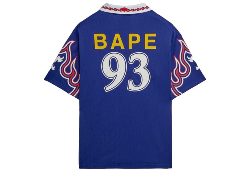The adidas x BAPE Flame Jersey Blue turns up the energy with bold flame graphics that immediately channel classic BAPE attitude. The Blue base gives the jersey a vibrant foundation, while co branding details reinforce the partnership between two giants of sport and streetwear. The athletic cut keeps it rooted in adidas performance heritage even as the design leans heavily into statement styling.