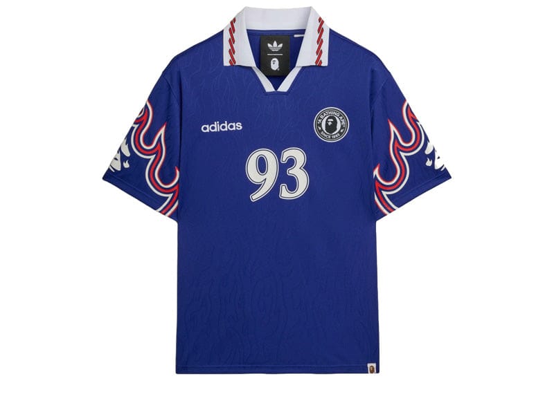 Flame motifs have long been part of BAPE visual language, and combining that with adidas sport DNA makes this jersey feel loud in the best way. It is the kind of piece that stands out at events, games, or layered into street fits that embrace color and graphics. For fans of collaboration history, this drop feels like another strong chapter in a partnership that consistently delivers culturally relevant designs.