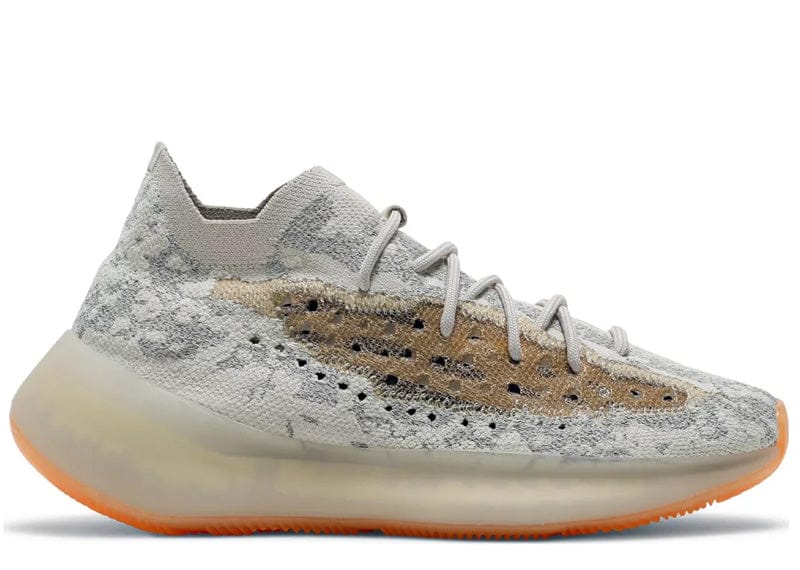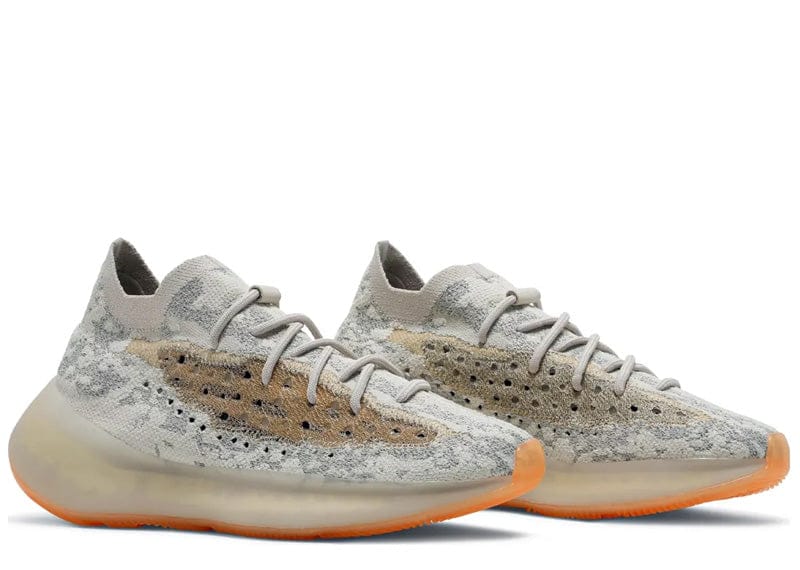 Featuring a subdued colourway, the Yeezy Boost 380 'Yecoraite' emerges with a camouflage-style mix of white and grey throughout its Primeknit construction. Decorative laces add to the aesthetic, while a translucent monofilament window provides contrast. Underfoot, the full-length Boost midsole is overlaid by a semi-translucent rubber cage, giving way to an orange herringbone rubber outsole for traction.