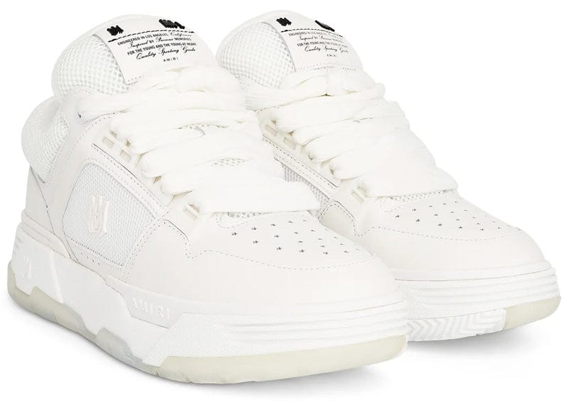 The AMIRI MA-1 White sneaker boasts a panelled design, featuring mesh panelling and perforated detailing for added breathability. With a branded insole and flat rubber sole, these sneakers offer both style and comfort. The debossed logo on the side and rear and logo patch at the tongue showcase the brand's expertise. Stay warm with the fleece lining and achieve a modern, sporty look with the front lace-up fastening.