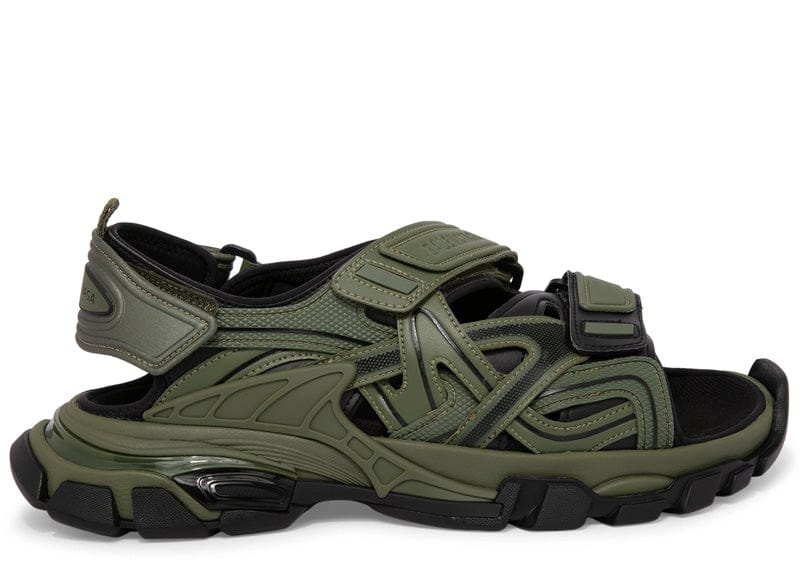 Engineered for modern comfort, the Balenciaga Track Sandal features a technical upper secured with dual velcro straps for adjustable fit. The custom footbed provides responsive support, while the signature 'BB'-branded bumper anchors the toe. A partially-exposed heel showcases Balenciaga's iconic logo and convenient pull tab, blending functional design with unmistakable style.
