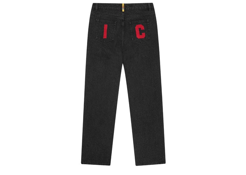 Elevate your casual wardrobe with these iconic BBC Ice Cream jeans, featuring a bold screen-printed running dog graphic across the front that captures the brand's playful spirit. The embroidered IC signet and signature "IC" lettering on the back pockets add refined detail to this statement piece. Crafted with a zip-fastened fly for effortless wear, these black and red denim pants blend streetwear edge with premium construction. A must-have for collectors of luxury streetwear and those seeking distinctive designer pieces that stand out.