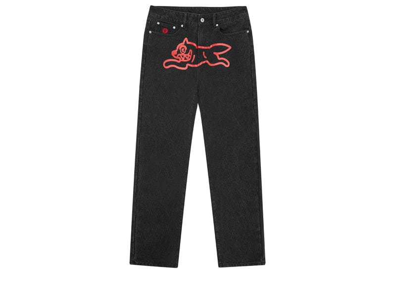 Step up your street style game with the Billionaire Boys Club Running Dog Denim Jeans. These slim-fit jeans feature a screen-printed running dog graphic on the front and embroidered IC signet and "IC" lettering on the back pockets. The zip-fastened fly provides convenience while the black denim adds a touch of edge to any outfit.