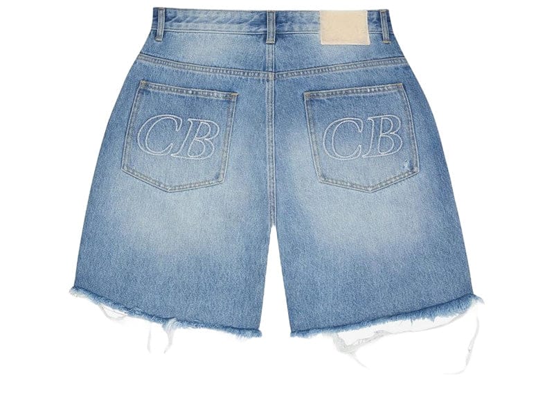 Cole Buxton's Distressed Denim Shorts deliver contemporary edge through premium midweight cotton construction and deliberate hand-distressed detailing. Signature CB monogram embroidery adorns the rear pockets, while an unexpected sherpa fleece back patch elevates the design with textural contrast. Versatile enough for festival grounds or casual social occasions, these shorts balance refined craftsmanship with understated rebellion—a refined essential for the discerning wardrobe.