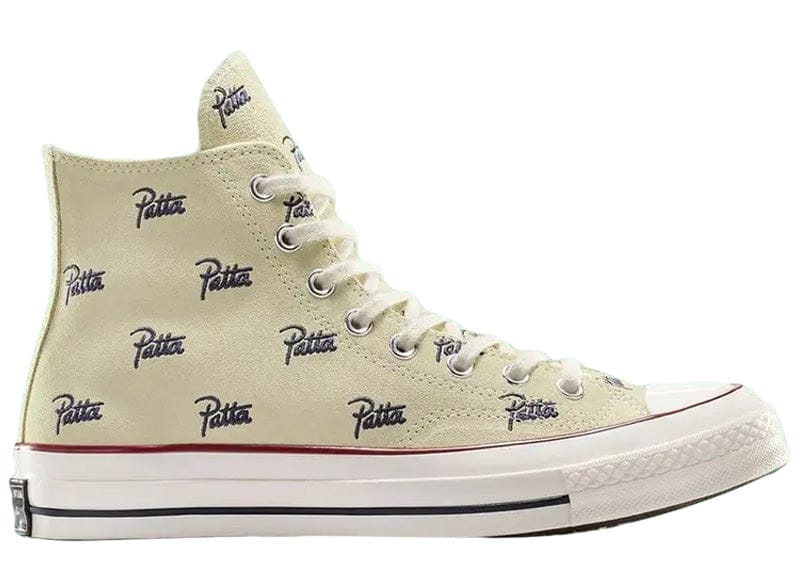 Introducing the Converse Chuck 70 Hi Patta Mini Logo Pack in a sophisticated Natural Ivory colorway, a must-have for sneaker enthusiasts and casual wearers alike. This iconic silhouette combines timeless design with modern flair, featuring a subtle yet striking black mini logo detail that seamlessly integrates Patta's unique style with the classic Converse aesthetic. Crafted with premium materials, this sneaker ensures durability and comfort, making it perfect for everyday wear. The high-top design provides ample ankle support, while the cushioned insole delivers all-day comfort. Whether you're dressing up or down, the Converse Chuck 70 Hi Patta Mini Logo Pack in Natural Ivory is a versatile addition to any wardrobe.