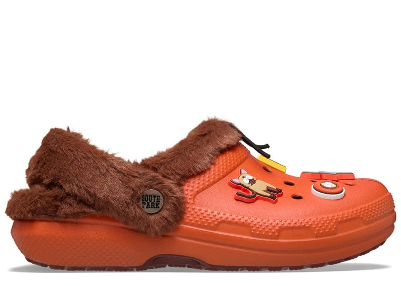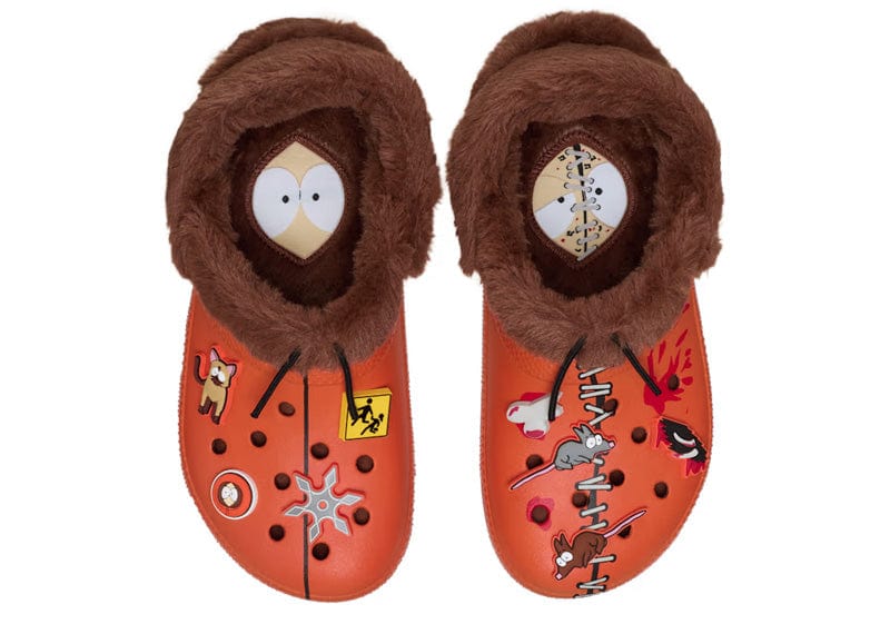 Step into comfort and style with the Crocs Classic Clog South Park Kenny. Featuring vibrant orange color and cozy fuzzy lining, these clogs showcase playful Kenny-themed details with exclusive Jibbitz™ charms on each shoe. Made from lightweight, water-friendly Croslite™ material, they offer buoyancy and all-day wearability. Whether for lounging or casual outings, these clogs bring fun and functionality to your footwear collection.
