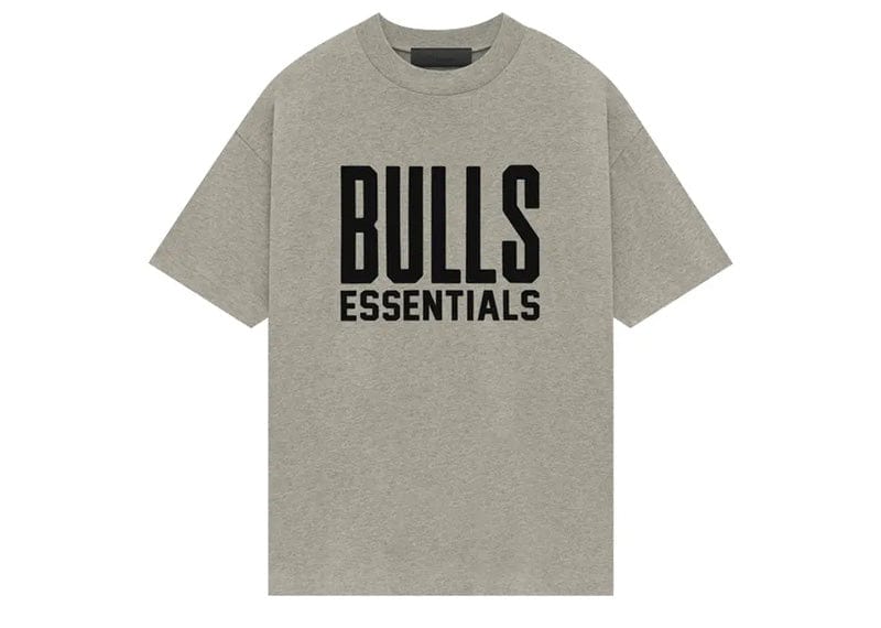 The Essentials Bulls short sleeve tee is crafted from core cotton jersey. It features a relaxed fit in the body with dropped shoulders and a rib-knit crewneck. On the front, there is a rubberized soft-touch "BULLS ESSENTIALS" lockup, along with the iconic NBA logo on the back. Additionally, a rubberized "Essentials Fear of God" label is located at the back collar.