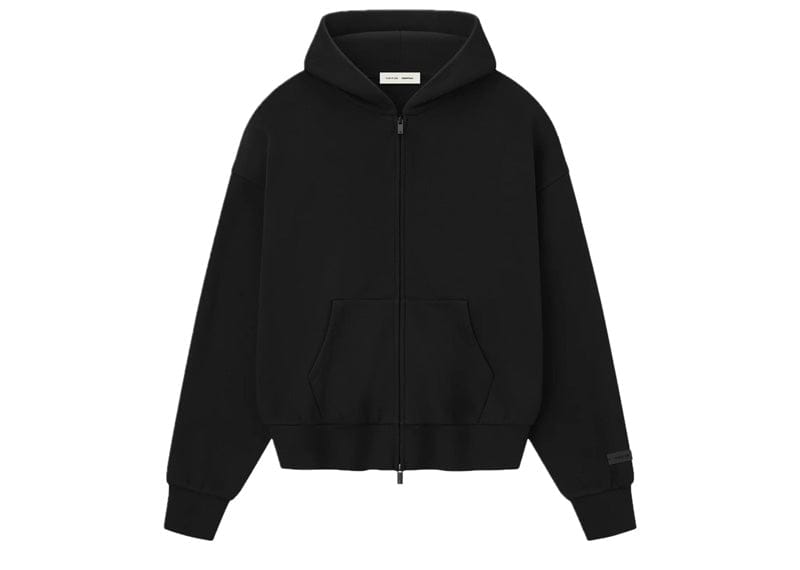 Elevate your essentials with this iconic Fear of God Essentials hoodie in jet black. Crafted from a premium 80% cotton and 20% polyester fleece blend at 380 grams, this piece delivers substantial comfort and durability. The classic fit features a relaxed silhouette with tailored sleeves, while the signature beveled metallic logo commands attention. Double-layer construction ensures lasting warmth, complemented by rib-knit cuffs and waist hem for a refined finish. A functional kangaroo pocket and translucent rubberized label complete this luxury essential—the perfect foundation for any elevated wardrobe.