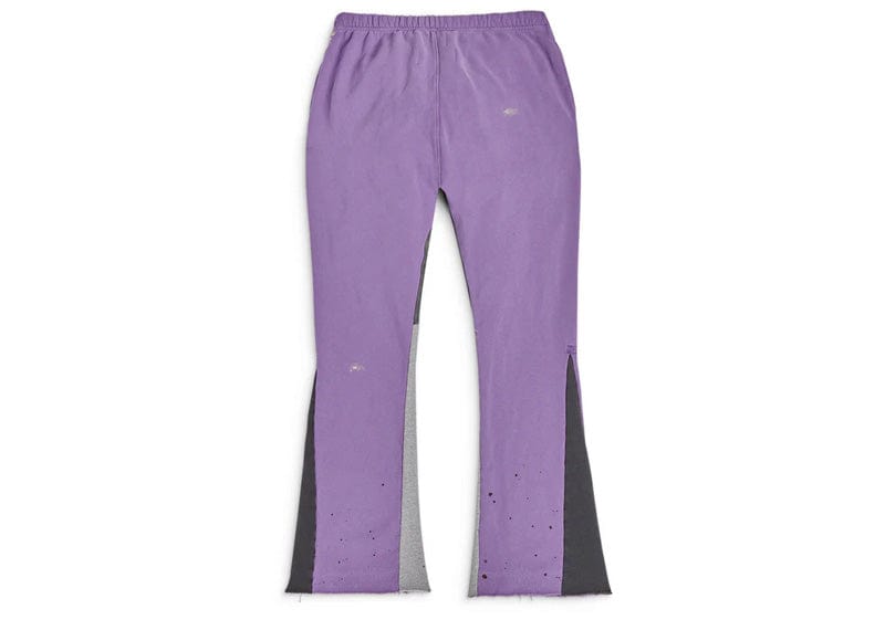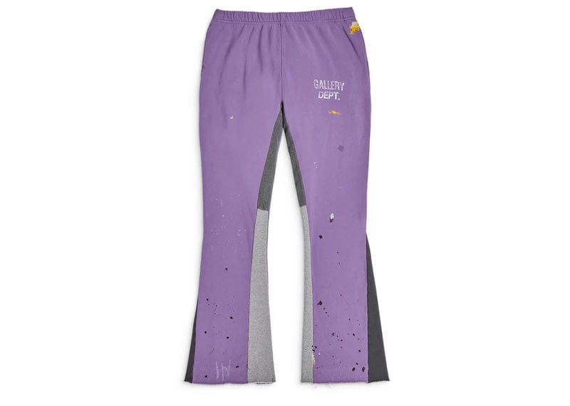 These Gallery Dept. Flare Pants in purple combine cozy fleece cotton with stylish denim accents for a unique look. Hand-painted in LA, each pair features the distinctive GALLERY DEPT. logo at the hip, adding an exclusive artistic touch. Perfect for those who want comfort without sacrificing standout style.