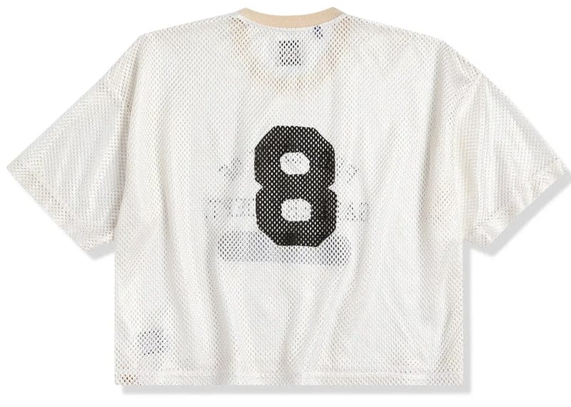 Gallery Dept. Practice Antique White Jersey brings authentic athletic heritage to your everyday wardrobe. Crafted from lightweight perforated mesh in a soft antique white, this piece delivers breathable comfort perfect for warm-weather styling. The signature arched "Property of Gallery Dept." graphic commands attention across the chest, complemented by a bold bar accent and vintage-inspired contrast rib neck. A boxy, slightly cropped silhouette flatters modern proportions, while the woven Art on Display label adds a refined finishing touch. Ideal for those seeking designer sportswear with genuine vintage appeal and effortless wearability.