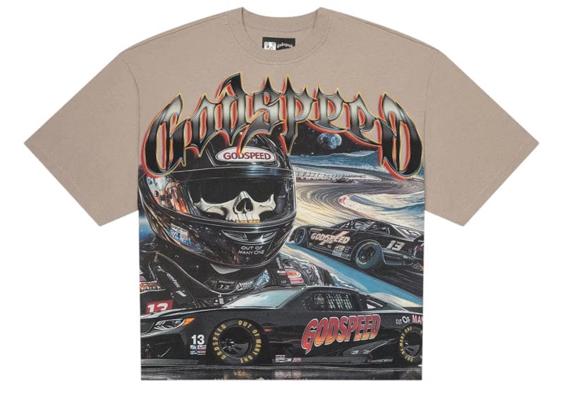 Godspeed Le Dernier T-shirt Stone Elevate your wardrobe with this exclusive limited-edition tee, numbered among only 555 units worldwide. Crafted from premium 10oz mid-weight washed fabric, it delivers exceptional comfort and durability with a lived-in aesthetic. The striking digital art piece commands attention, making this more than just apparel—it's a collectible statement. Each shirt includes an authenticity tag, guaranteeing your piece's exclusivity. Note: This style runs oversized; size down if you prefer a standard fit.