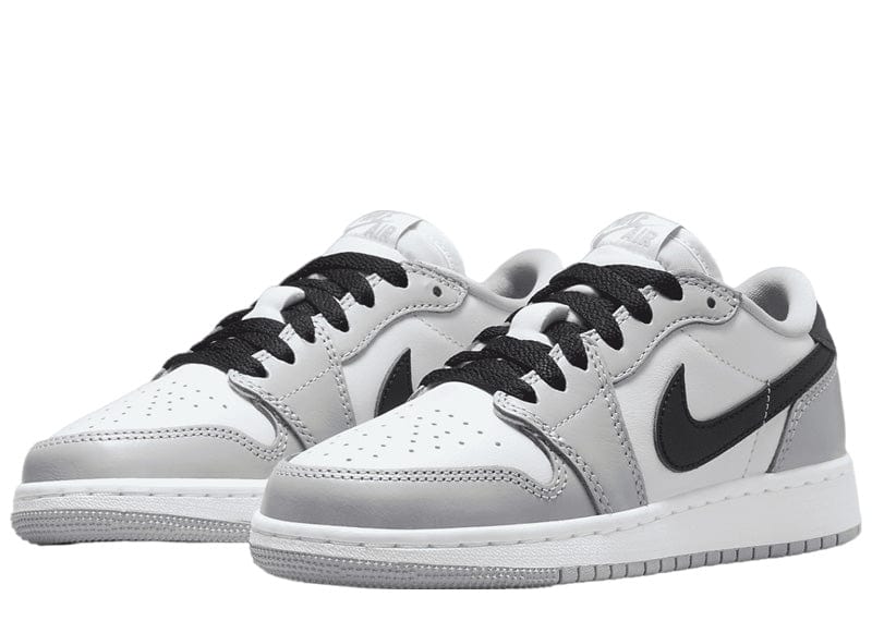 The Air Jordan 1 Low OG Wolf Grey GS in White and Wolf Grey is a testament to the timeless style and versatility that the Jordan brand consistently delivers. This particular edition stands out with its clean, minimalistic design, combining a crisp white leather base with sleek wolf grey overlays. The choice of colors creates a sophisticated contrast, making it a go-to sneaker for both casual and semi-formal outfits. The iconic Nike Swoosh and Air Jordan wing logo are subtly integrated into the design, ensuring that the shoe maintains its classic basketball heritage while appealing to modern sneaker enthusiasts.