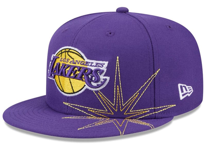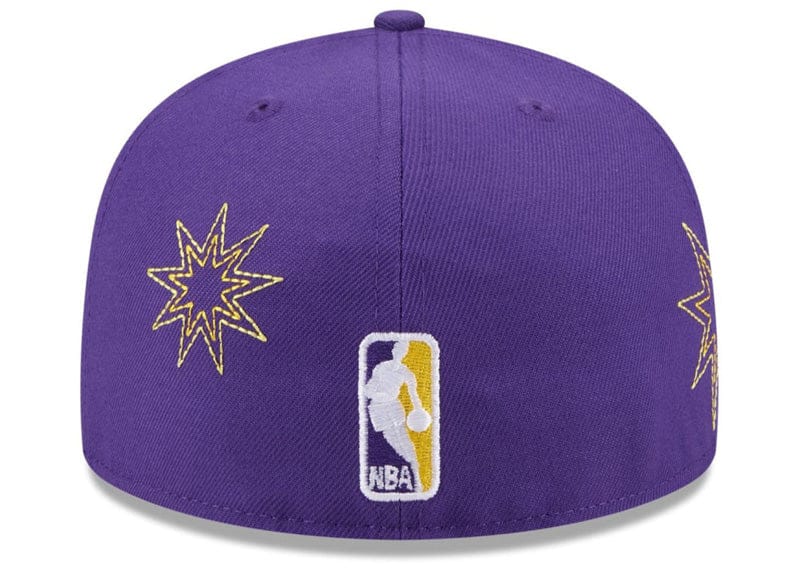 The Los Angeles Lakers Solar Stars 59FIFTY Fitted Cap brings iconic team pride to your everyday style. This New Era classic features meticulously embroidered Lakers branding on the front panels paired with the NBA Logoman at the back, while intricate star stitching adds visual depth throughout. The grey undervisor provides a refined contrast that complements any look. Sized at 7 3/4, this fitted cap delivers the authentic on-court aesthetic that serious fans demand—perfect for game days or casual wear.