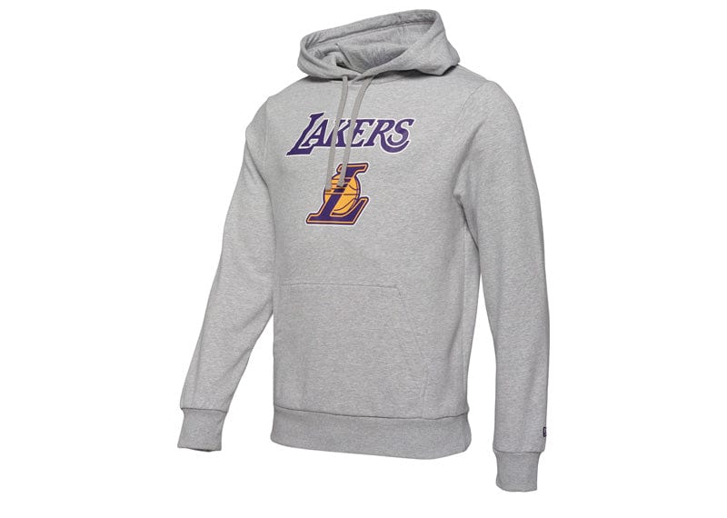 This NBA Regular LA Lakers Pullover Hoodie from New Era is a must-have for any fan. The LA Lakers wordmark and logo on the front show off your team spirit, while the kangaroo pocket and drawstring hood offer both functionality and style. With the New Era Flag embroidered on the left sleeve, this hoodie is the perfect addition to any game day outfit.