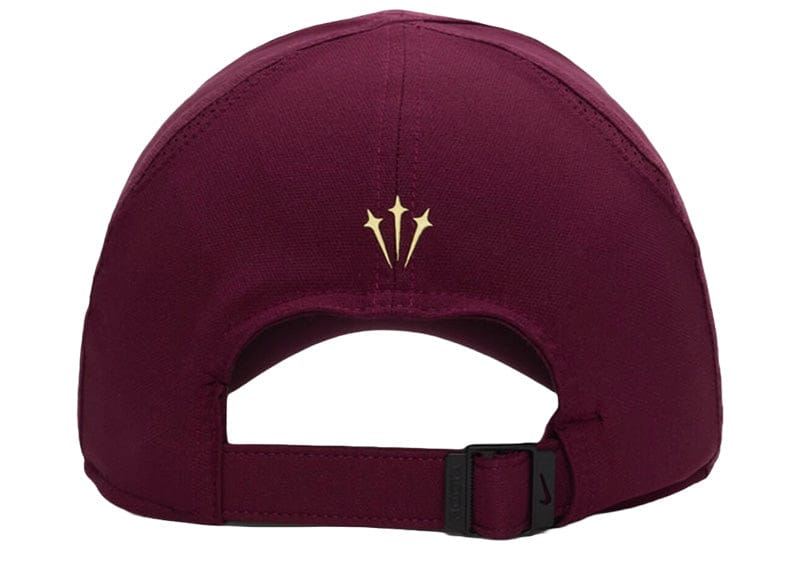 The Nike x NOCTA S.S.C. Cap combines striking visual impact with functional design. Featuring bold printed graphics and a NOCTA-branded adjustable slide, it delivers a customized fit for any wearer. Constructed from lightweight 100% polyester, this cap maintains a sleek, sporty silhouette that transitions effortlessly from court to street. The Dark Beetroot and Citron Tint colorway ensures standout presence while the refined construction reflects NOCTA's commitment to elevated essentials. Perfect for those seeking distinctive headwear with authentic athletic credibility.
