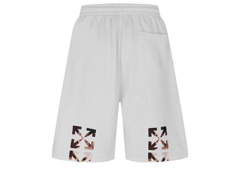 Elevate your downtime style with Off-White Caravaggio Arrow Sweatshorts in crisp white. These premium shorts showcase the iconic logo on the front and signature arrows on the back, instantly marking you as a connoisseur of luxury streetwear. Versatile enough for home relaxation yet stylish enough for casual outings, they're the perfect investment for your fashion-forward wardrobe. Don't just wear shorts—make a statement.
