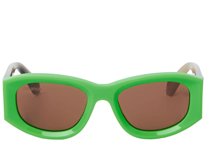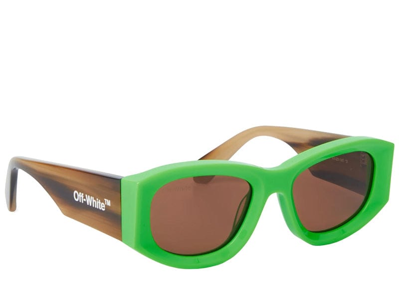 The Off-White Joan Sunglasses blend 90’s sporty style with a modern, architectural twist. Featuring a distinctive acetate frame with sculptural volumes, these sunglasses create a striking 3D graphic effect. Available in bold green contrasted with stripped havana temples, they add a vibrant edge to any look while delivering standout style and confident wearability.