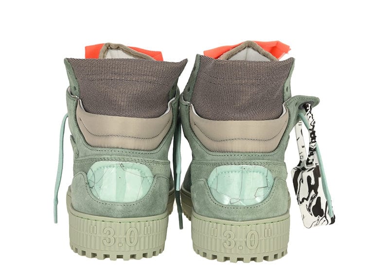 Step out in style with the Off-White Off-Court 3.0 Glitter High Top Sneaker in Mint Green. Crafted from a stretch cotton blend and leather, these sneakers offer a comfortable, flexible fit. The front lace-up fastening ensures secure wear, while the logo patch on the tongue adds a signature touch. Featuring a round toe and a ridged rubber sole, they provide both durability and traction. Perfect for making a bold statement, these high tops blend fashion and function effortlessly.