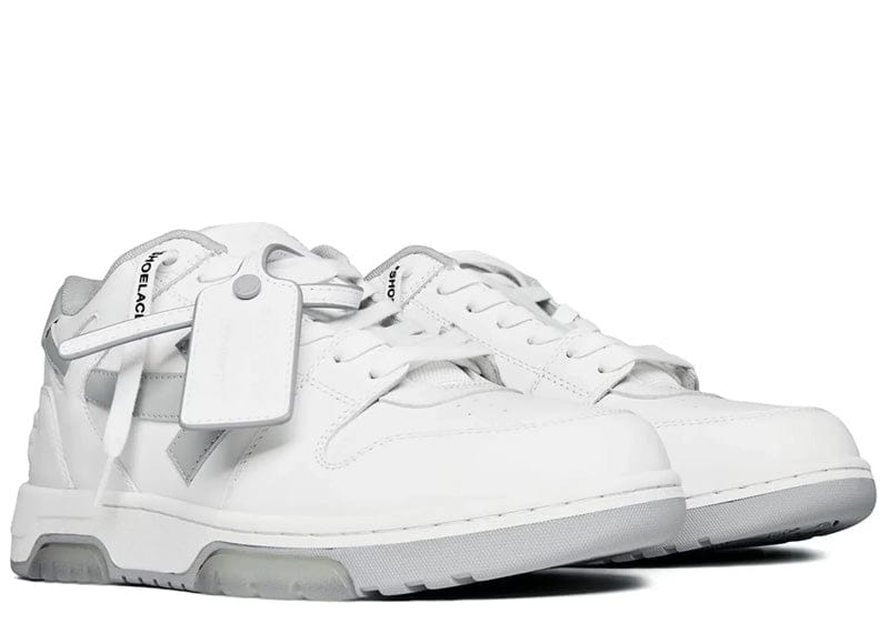 Step into the spirit of the 90s with the OFF-WHITE Out Of Office "OOO" Low White Light Grey sneakers. Combining streetwear, basketball, and running influences, these shoes feature a durable leather and recycled polyester upper for style and sustainability. The rubber sole ensures reliable grip and comfort, making them perfect for everyday wear or making a bold statement. Elevate your look with a unique blend of heritage and modern design.