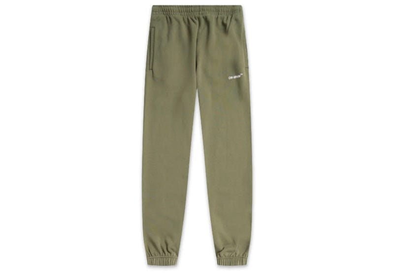 Elevate your casual wardrobe with the Off-White Wave Diagonal Sweatpants in Army Green. Designed for comfort and style, these sweatpants feature a distinctive wave diagonal pattern that adds a modern edge to your look. The rich army green color offers versatility, perfect for pairing with your favorite tops. Crafted with quality materials, they provide a cozy fit ideal for everyday wear or relaxed outings. Make a bold statement while staying comfortable with these unique sweatpants.