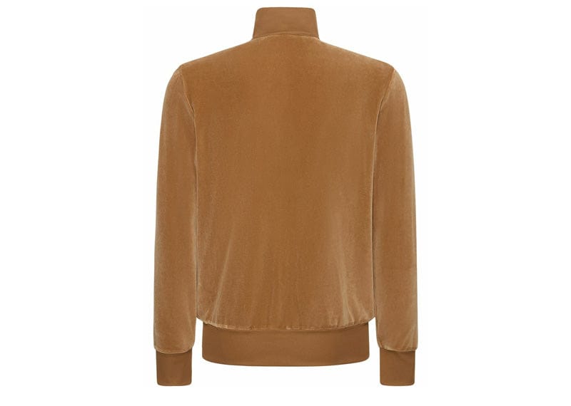 Upgrade your fall wardrobe with the new Palm Angels Logo-Print Track Jacket in Sand Beige. This men's camel velvet jacket features a full-length zipper and two zippered side pockets for added convenience. Designed with the exclusive addition of the iconic Palm Angels logo embroidered in black on the front, this track jacket is a must-have for any fashion-forward individual looking for both style and functionality.