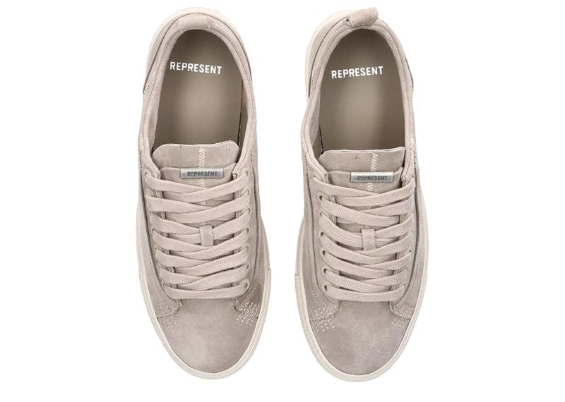 Expertly crafted over four years, Represent's Alpha trainers embody the brand's unmatched attention to detail and timeless design. Handmade with premium suede and featuring signature zigzag stitching, these low-top trainers exude retro streetwear vibes. With a custom sole for added impact, they represent the pinnacle of British style.