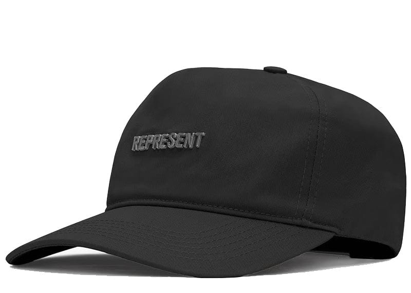 Introducing the Represent Cap in Black, a clean golfer cap silhouette featuring metal Represent lettering to the front.