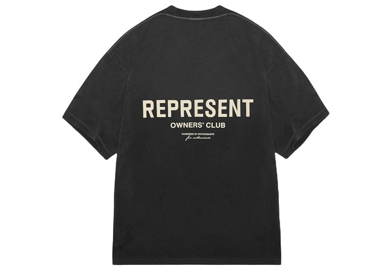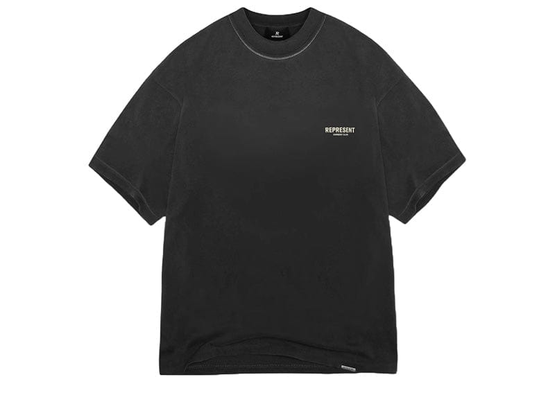 Introducing the Owners’ Club T-Shirt in Aged Black, a short sleeve jersey tee, crafted with a slightly oversized fit in a medium weight cotton. The Owners’ Club T-Shirt has a ribbed crewneck collar, with Owners’ Club branding to the rear and chest. The T-Shirt is finished with a Represent metal bar to the hem.
