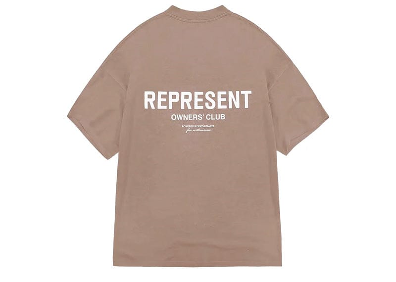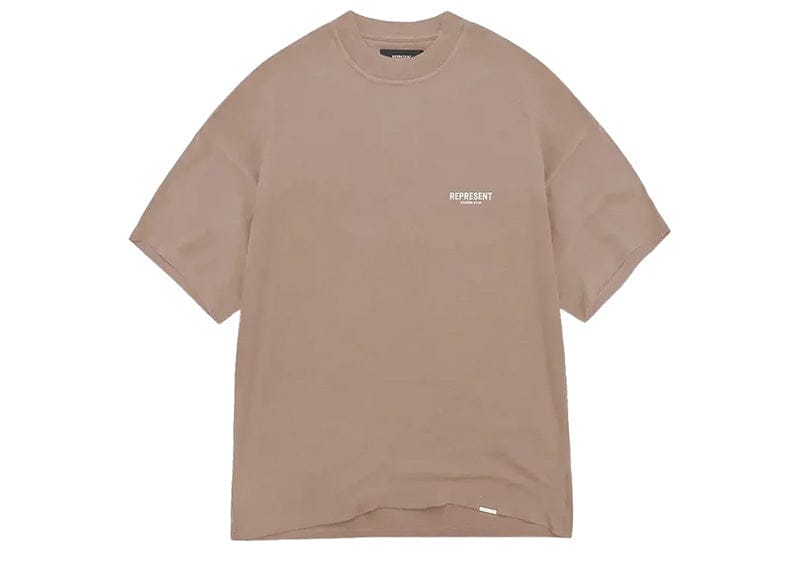 Elevate your wardrobe with Represent's clay-coloured tee. Made from soft cotton, it's adorned with the brand's logo on the chest and back. Versatile for any season, wear it solo or layer with a jacket. Crafted with a ribbed crewneck and a woven brand tab. 100% Cotton.