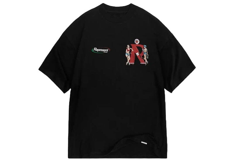 Crafted with premium medium weight cotton, the Represent Premium T-Shirt boasts a slightly oversized fit for ultimate comfort. Featuring a ribbed crewneck collar and distinctive in-house designed graphics on the chest and back, this short sleeve Off Black T-Shirt is the perfect addition to any wardrobe.