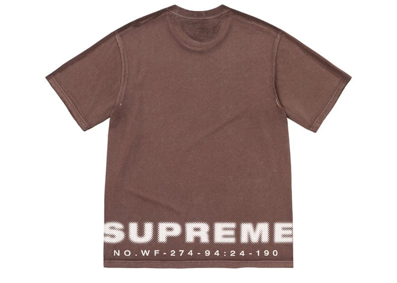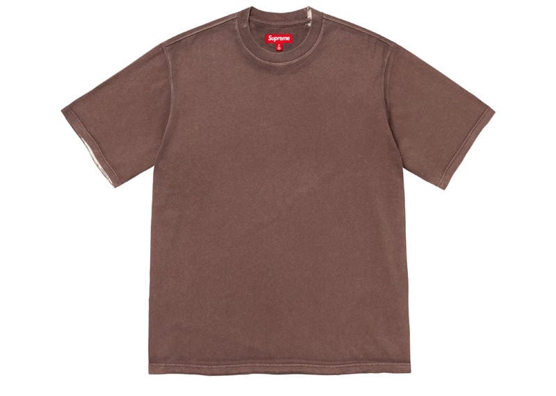 All cotton jersey crewneck with discharge printed logo at back hem.