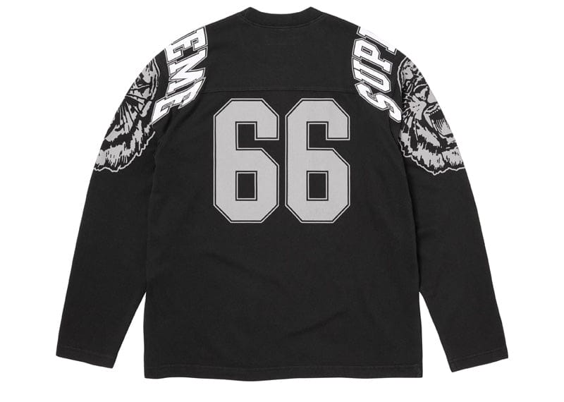 All cotton jersey crewneck with printed graphic on sleeves and back. Athletic label at lower front.