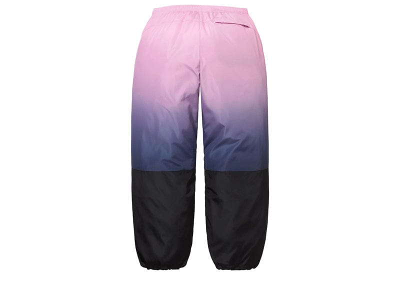 Water resistant poly with mesh and taffeta lining. Welt zip hand pockets and single back zip pocket. Elastic waistband with interior drawcord and interior elastic shockcord at cuffs. Woven patch and embroidered logos on thigh.